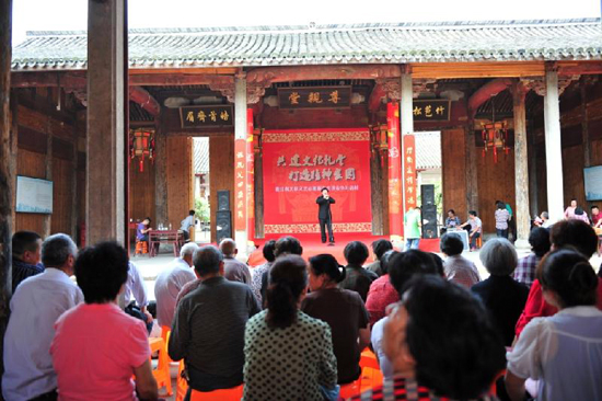 這是省文聯與金華市委宣傳部鑒署《攜手共建農村文化禮堂合作書》之后,在省市農村文化禮堂共建點開展的第一次活動。省文聯將結合自身實際,發動各省級文藝家協會和市、縣文聯,實行三級聯動,為農村文化禮堂內容建設提供包括展示展覽、文化禮儀活動、輔導培訓及采風等服務,努力將共建點建成示范性文化禮堂。