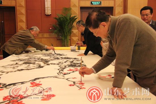 參會的20余名知名畫家21日下午在濰坊攜手作畫賑災,為災區同胞祈福。濰坊市委宣傳部部長初寶杰希望,藝術家們能在此次賑災筆會上創作出一批精品畫作,捐獻給地震災區,用筆墨與愛心表達對災區人民的深切同情和關懷。