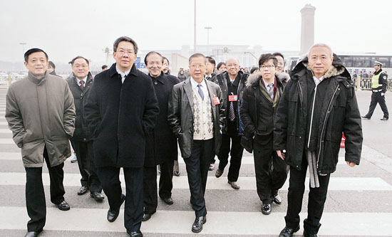 11月22日上午,參加第九次全國文代會的澳門特邀代表正走向人民大會堂參加大會開幕式。中國文藝網(wǎng) 孟祥寧 攝
