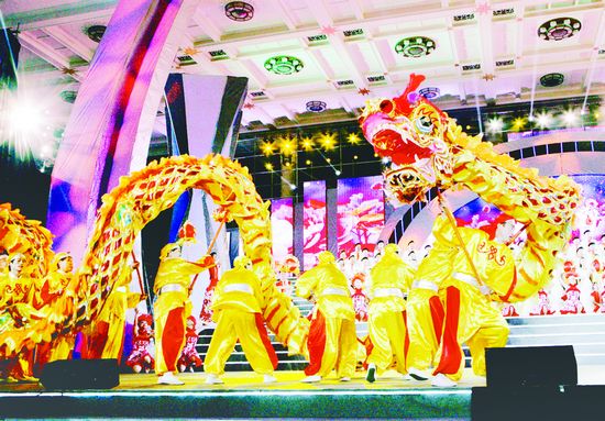 在“百花迎春——中國文學(xué)藝術(shù)界2012春節(jié)大聯(lián)歡”上,七彩祥龍“舞”出新年喜氣
