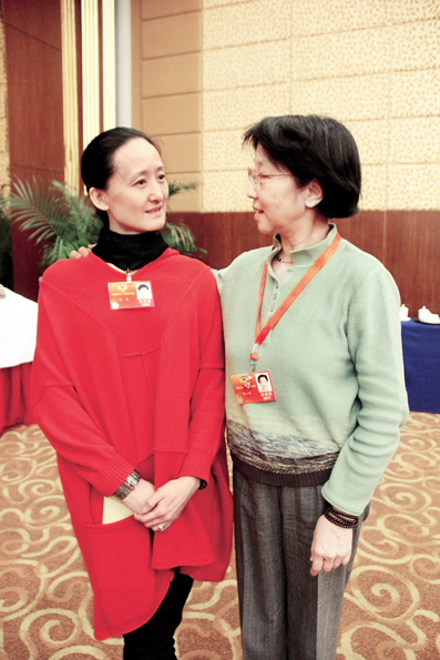 全國政協委員馮英和趙汝蘅親切交談 本報記者 張 悅 攝