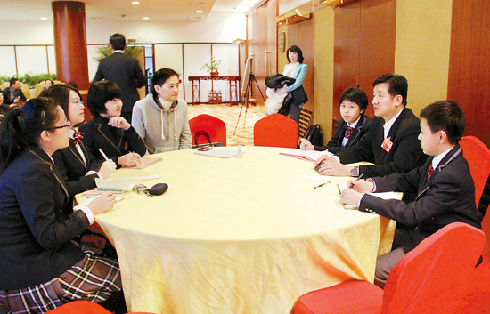 張會軍、陳國星委員同北京四中的“學(xué)生記者”開起圓桌會議。中國藝術(shù)報 張悅 王春梅 攝