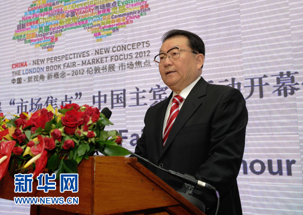 4月15日晚,中共中央政治局常委李長春在倫敦出席倫敦國際書展“市場(chǎng)焦點(diǎn)”中國主賓國開幕式并致辭。新華社記者馬占成攝