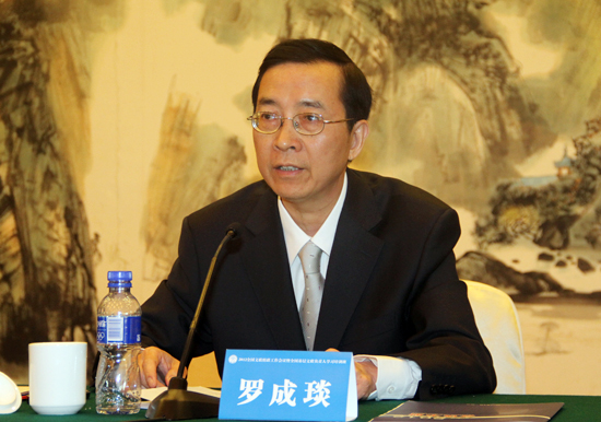 4月16日,由中國文聯主辦,中國文聯國內聯絡部、湖北省文聯聯合承辦的2012全國文聯組聯工作會議暨全國基層文聯負責人學習培訓班在武漢開幕。圖為中國文聯國內聯絡部主任羅成琰致辭。中國文藝網 孟祥寧 攝