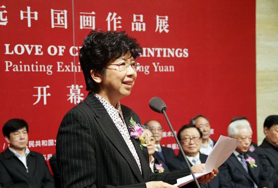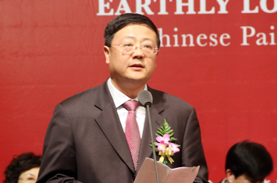 4月26日,“筆墨塵緣——馮遠中國畫作品展”在京開幕。圖為陳吉寧致辭。中國文藝網 孟祥寧 攝