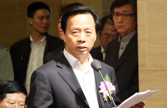 4月26日,“筆墨塵緣——馮遠中國畫作品展”在京開幕。圖為王文章致辭。中國文藝網 孟祥寧 攝