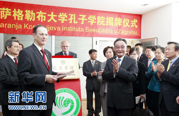 當地時間19日上午,正在克羅地亞進行正式友好訪問的中國全國人大常委會委員長吳邦國專程來到薩格勒布大學,出席克羅地亞第一個孔子學院的揭牌儀式。