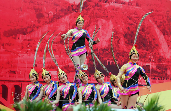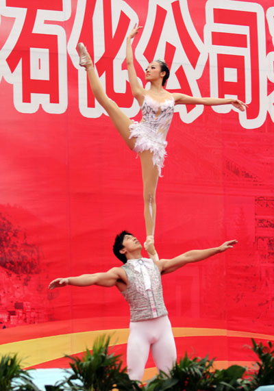 萬余名觀眾的演出現場座無虛席。吉化公司數十名勞動模范、金牌工人坐在前排,演出會場紅旗招展,“中國石油感謝黨中央、國務院親切關懷”、“中國石油吉化向全國人民致敬”、“迎接黨的十八大,創建和諧吉林”的標牌在觀眾席中格外醒目。著名相聲演員牛群和央視著名節目主持人朱軍、鞠萍、劉芳菲組成的嘉賓主持隊伍一登場就受到現場觀眾熱烈歡迎。雜技、魔術表演是此次演出一大亮點。在偌大的體育場上空,觀眾早早地就看到了一個起重機的大吊臂懸在上邊,原來,這是雜技《空中彩綢》的道具,來自濟南雜技團的吳長征、孔倩倩為吉林的觀眾帶來了一場優美的高空“舞蹈”;而另一個精彩“舞蹈”是廣州軍區政治部戰士雜技團陳東、于婉青為大家帶來的《東方的天鵝——芭蕾對手頂》。遠道而來的四川省遂寧市雜技團牟強、楊剛給觀眾帶來的是《比翼——雙人倒立技巧》,堪稱力量和頑強精神的完美展現;魔術師李彥培表演魔術《變臉》,隨著一張張不同色彩、花樣的臉譜瞬間替換,臺下觀眾連連叫好;《俏花旦——空竹》是中國雜技團的代表性節目,是京劇造型與空竹技巧的完美結合。雜技絕活讓觀眾驚嘆,名家大腕相繼登臺亮相則將演出氛圍推向高潮。一聽到那豪邁而洪亮的女聲評書,很多人已經猜到,這就是中國文聯副主席、著名評書表演藝術家劉蘭芳,她為大家帶來了一段詼諧幽默的《張飛請諸葛》;馮鞏、李志強特意為吉化的觀眾量身定做了一段《吉化您好》,一下子拉近了與觀眾的距離;72歲的著名男高音歌唱家吳雁澤一曲《草原上升起不落的太陽》,嘹亮的歌聲直透云霄。著名電影演員郭碧川的詩朗誦《崇敬——獻給英雄的吉化人》,著名京劇演員于蘭的京劇《杜鵑山》選段《家住安源》,中國廣播民族樂團名譽首席、著名胡琴演奏家姜克美的京胡獨奏《夜深沉》,中國石油吉化公司職工喬曉鷗帶來的《化工城之夜》,著名歌唱家范競馬、鄭詠演唱的《走向復興》等節目都是精彩紛呈。