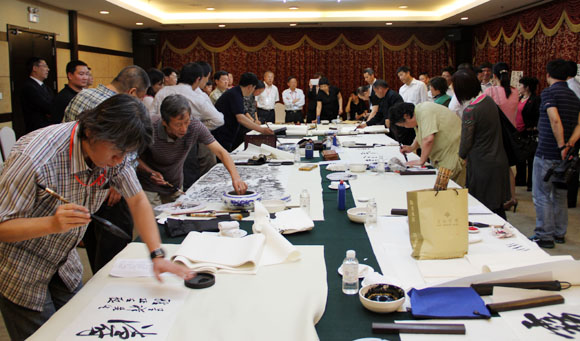 5月25日晚,中國文聯文藝志愿服務團書畫家筆會創作