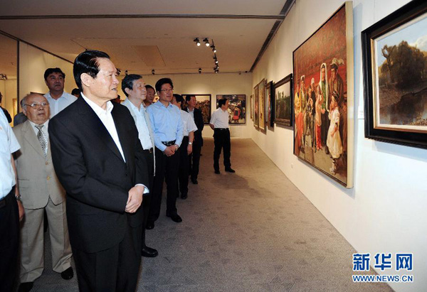 周永康參觀“情系神州——新疆油畫全國行”展覽