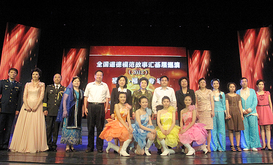 5月22日,“全國道德模范故事匯”基層巡演2012福建福州專場中,出席觀看晚會的領導與演員合影。劉紅英 攝
