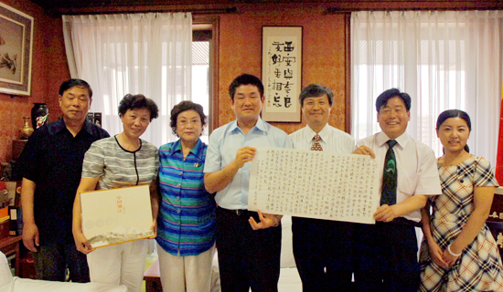 中國文聯訪日代表團向日方贈送書法作品 劉燕銘 攝