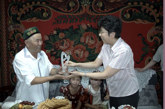 中國文聯黨組書記、副主席趙實專程趕往阜康市一位維吾爾族老鄉家慰問