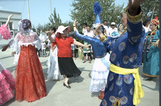 慰問團的領導和藝術家們深入到新疆各族群眾中間