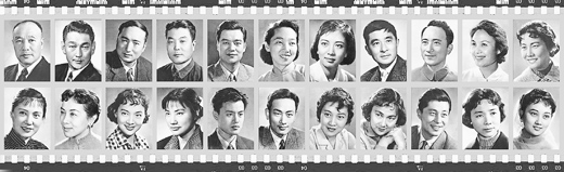 從左至右第一排為崔嵬、謝添、陳強、張平、于洋、于藍、謝芳、趙丹、孫道臨、白楊、張瑞芳;第二排為秦怡、上官云珠、王丹鳳、祝希娟、李亞林、龐學勤、張圓、金迪、王心剛、田華和王曉棠。 中國電影博物館提供