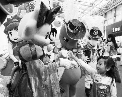動漫展上的卡通人物吸引了小朋友的目光。 CFP
