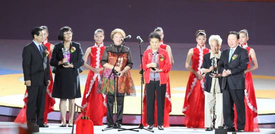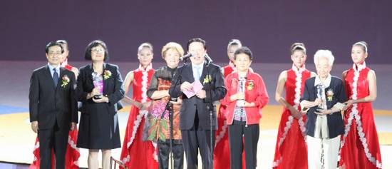 全國政協副主席、中國文聯主席孫家正和浙江省委書記趙洪祝為于藍、金迪、祝希娟等老藝術家等老藝術家頒發獎杯