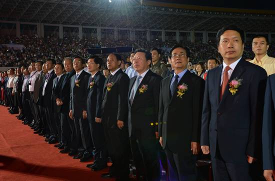 孫家正、趙洪祝、夏潮等領導觀看升國旗儀式,袁云攝
