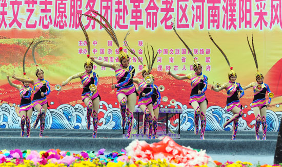 為慶祝新中國成立63周年、喜迎黨的十八大勝利召開,中國文聯主辦,中國雜協、中國文聯國內聯絡部、河南省委宣傳部、河南省文聯、濮陽市委市政府承辦了此次中國文聯文藝志愿服務團赴革命老區河南濮陽采風慰問演出活動。中國文聯黨組副書記、副主席李屹在活動上的致辭中表示,在河南濮陽舉辦這次采風慰問演出活動,就是要把黨和政府的親切關懷、把廣大文藝工作者的深情厚誼送給革命老區的父老鄉親們,讓大家共享文化發展的成果、共慶共和國的生日、共迎十八大的勝利召開。為貫徹落實黨的十七屆六中全會精神,中國文聯成立了中國文聯文藝志愿服務團。此次活動就是文藝工作者到人民中、到生活中、到實踐中去,志愿為人民群眾服務的具體行動,就是文藝工作者積極踐行“愛國、為民、崇德、尚藝”的文藝界核心價值觀的一次教育實踐活動。