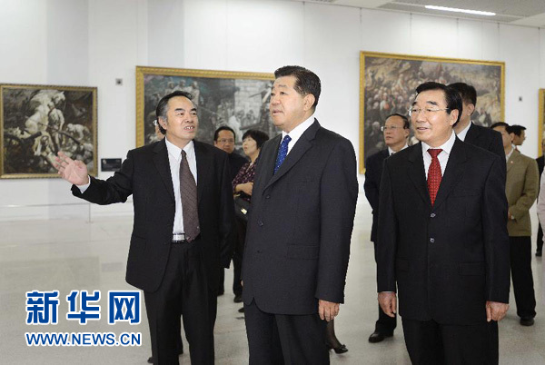 賈慶林參觀“迎著曙光——弘揚(yáng)西柏坡精神陳承齊大型油畫(huà)展”