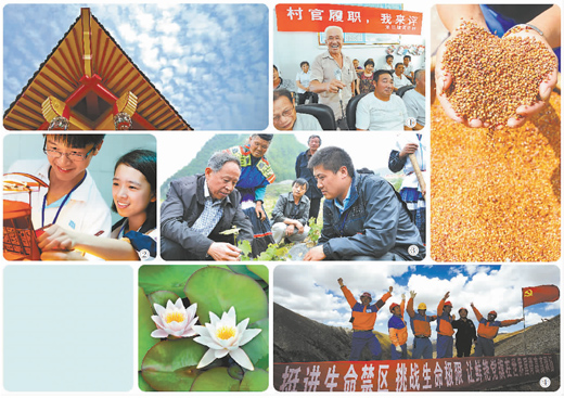 圖④:鮮艷黨旗高高飄揚(yáng)在海拔5300米的生命禁區(qū)。新華社記者 格桑達(dá)瓦攝