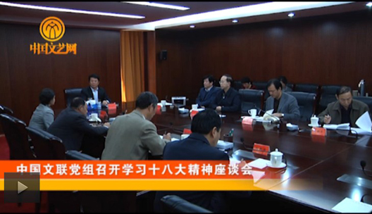 11月8日,中國文聯黨組召開會議,學習胡錦濤同志代表第十七屆中央委員會向黨的十八大所作的工作報告。中國文聯黨組副書記、副主席覃志剛、李屹,黨組成員、副主席楊承志、左中一,黨組成員、書記處書記夏潮、李前光出席會議。會議由覃志剛主持。