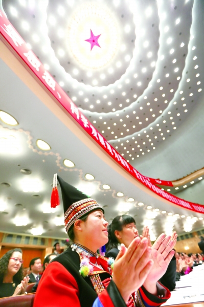 鏡頭,掃過一張張幸福的面龐。那是來自北京的焦若愚代表,雖然年近百歲,但這位有著76年黨齡的老人依然精神矍鑠;那是來自江蘇的大學生村官石磊代表,雖然在廣闊天地飽經風霜,但倦容仍然掩蓋不住青春的光芒;那是來自山東青島港的農民工代表皮進軍,身在北京,就想著為農民工兄弟說幾句話;那是來自甘肅的蘭州大學黨委書記王寒松代表,千里之外,他心里依然牽掛著校園里的學子……同樣的理想、共同的信念讓大家聚在一起,肩負著同樣的希望和重托,2300多名代表和特邀代表拾階而上,步入莊嚴而神圣的殿堂!