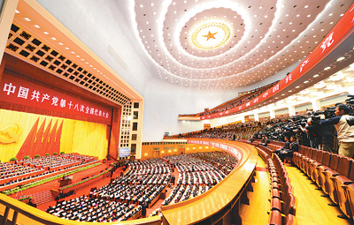 11月8日,中國(guó)共產(chǎn)黨第十八次全國(guó)代表大會(huì)在人民大會(huì)堂舉行。人民日?qǐng)?bào)記者 雷聲攝