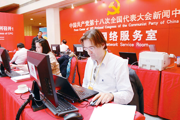聚焦十八大新聞中心 將十八大信息傳向世界