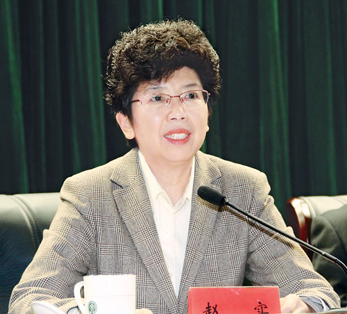 趙實在大會上講話。她傳達了黨的十八大精神并對中國文聯(lián)學習宣傳貫徹黨的十八大精神進行了全面部署。她表示,黨的十八大的勝利召開,舉國關(guān)注、舉世矚目,具有十分重大的戰(zhàn)略意義和政治意義。這次大會標志著中國共產(chǎn)黨的歷史掀開了新的篇章,中國特色社會主義邁上新的征程,中華民族偉大復興展現(xiàn)出新的前景。從我國的歷史方位看,這次大會是在我國全面建成小康社會決定性階段召開的一次十分重要的大會,是一次高舉旗幟、繼往開來、團結(jié)奮進的大會,是動員和引領全黨全國各族人民,朝著全面建成小康社會新目標、全面推進改革開放新征程的一次重要會議,對于凝聚黨心軍心民心、推動黨和國家事業(yè)發(fā)展具有重大的意義。趙實指出,胡錦濤同志代表十七屆中央委員會所作的十八大報告,主題鮮明、立意高遠、思想深刻,確立了科學發(fā)展觀的歷史新地位,深化了中國特色社會主義的新認識,提出了全面建成小康社會的新目標,部署了奮力推進社會主義事業(yè)的新任務,對提高黨的建設科學化水平提出了新要求,為黨和國家各項事業(yè)進一步發(fā)展指明了方向,是我們黨帶領全國各族人民奪取中國特色社會主義新勝利的政治宣言和行動綱領,是馬克思主義的綱領性文獻。黨的十八大和十八屆一中全會選舉產(chǎn)生的新一屆中央領導集體,是一個政治堅定、團結(jié)統(tǒng)一、堅強有力、奮發(fā)有為、深得人民群眾信任和擁護的中央領導集體,必將成為帶領全黨全國各族人民全面建成小康社會、奪取中國特色社會主義新勝利的堅強領導核心。中國文聯(lián)黨組、全體黨員、干部職工和廣大文藝工作者堅決擁護以習近平同志為總書記的黨中央的堅強領導,堅定地在思想上政治上行動上與黨中央保持高度一致,不折不扣地貫徹執(zhí)行黨中央的路線方針政策和重大決策部署,為文藝事業(yè)大發(fā)展大繁榮和中華民族的偉大復興不懈奮斗。這是我們的政治立場,也是政治態(tài)度,更是政治責任。
