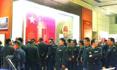 在全黨全國上下認真學習貫徹黨的十八大精神的熱潮中,新一屆中央領導集體參觀“復興之路”基本陳列,回顧近代以來中國人民為實現民族復興走過的歷史進程,號召全黨同志承前啟后、繼往開來,把我們的黨建設好,團結全體中華兒女把我們國家建設好,把我們民族發展好,繼續朝著中華民族偉大復興的目標奮勇前進。