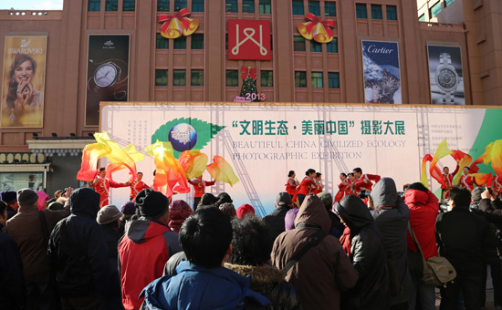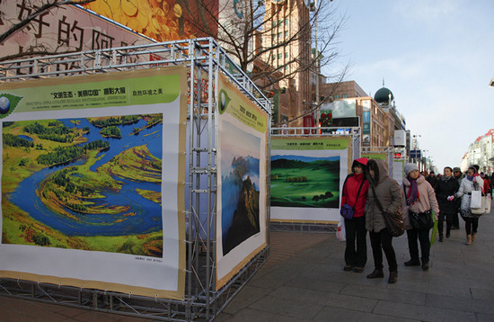 為了更好地學習宣傳貫徹黨的十八大精神,由中國文聯、中國攝協主辦的“文明生態 美麗中國”攝影大展12月5日在北京王府井步行街精彩亮相。參展的116幅作品,是從近年來國際國內各類重量級影展獲獎作品中嚴格遴選而來的,地域涵蓋全國31個省區市及港澳臺地區,題材涉及自然、經濟、社會各個方面,參展的作者中,既有著名的攝影家,也有普通的攝影愛好者。通過攝影人不同的視角,展示了偉大祖國的自然環境之美、人文社會之美,展示了天藍、地綠、水凈的美好家園,用辯證發展的眼光譜寫了一幅建設中的“美麗中國”全景圖。