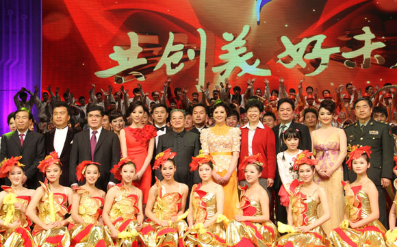 “陽光路上,無限風光,前進的腳步日夜兼程,不可阻擋;陽光路上,旗幟飛揚,科學發展為和諧的中國,引領方向……”在鄭詠、幺紅、張英席等著名歌唱家合唱的《陽光路上》的歌聲中,晚會圓滿落下帷幕。