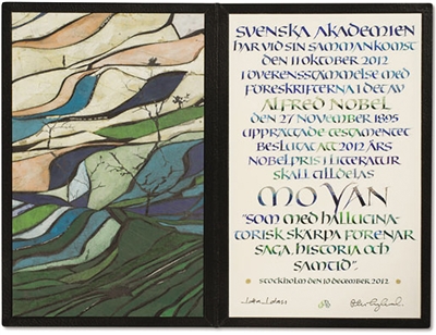 瑞典畫家約翰·斯滕堡為莫言設計的獲獎證書