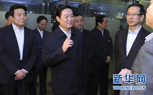 12月11日,中共中央政治局委員、中央書記處書記、中宣部部長劉奇葆在中央新聞單位調(diào)研。這是劉奇葆在中央電視臺調(diào)研。 新華社記者 張鐸 攝