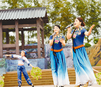 12月16日,演員在表演歌伴舞《打支山歌過橫排》。