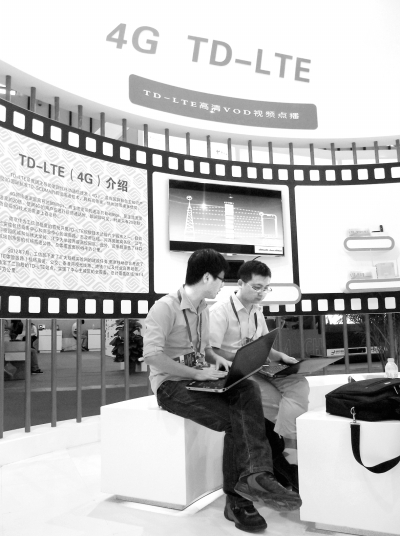 觀眾在南京軟博會現場體驗4G高清VOD視頻點播通信服務。新華社發