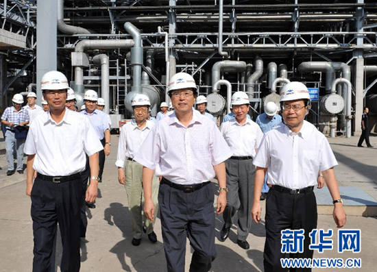 2008年9月2日,張德江調研燕山石化公司生產經營工作。 新華社記者 劉建生攝