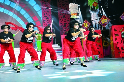平日里在廟會上難得一見的旱船、太平車、跑驢、大秧歌,成了農民春晚的“開場戲”,一出場就把邯鄲電視臺演播大廳變成了一片歡騰的海洋。76歲的申玉蓉老人與她秧歌隊的老姊妹精心排練的江南style騎馬舞,引得觀眾們紛紛掏出手機,錄下這“老奶奶們的騎馬舞”。涉縣農民陳向軍一亮嗓子,人們驚呼“這是阿寶嗎?”張銀嶺老人一家六口現場聯手作畫,剪紙高手現場剪紙……