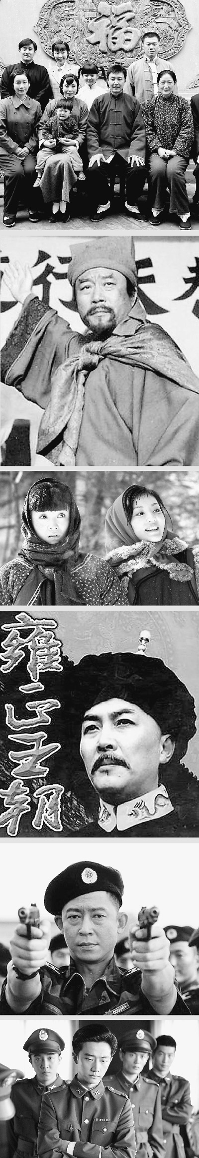 圖為央視“一套”近年來(lái)播出的部分“開(kāi)年大戲”劇照,從上至下依次為:《全家福》、《水滸傳》、《闖關(guān)東》、《雍正王朝》、《DA師》、《黎明前的暗戰(zhàn)》。