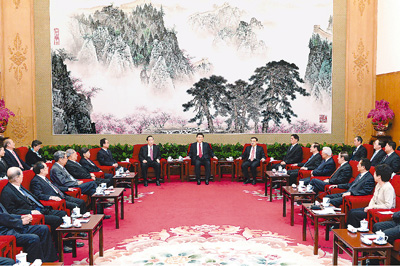 習近平強調,中國共產黨同各民主黨派和無黨派人士團結合作,是建立在共同思想政治基礎之上的。今天,我們的共同思想政治基礎就是中國特色社會主義。中國特色社會主義事業越是向前推進,越需要凝聚最廣泛的力量。同志們要充分認識肩負的重要責任和使命,堅定政治信念,堅持前進方向,多建睿智之言,多獻務實之策,共同開創中國特色社會主義事業新局面。