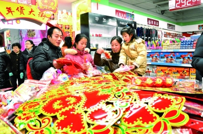 2月6日,山東省淄博市博山區(qū)市民在超市購買“年味商品”。李志中、魏其寧攝/光明圖片