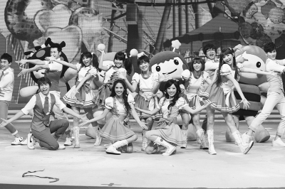 動漫人偶最受孩子們的歡迎,在“動漫歌曲串燒”中,小魔仙和格格巫一起跳起了舞,喜羊羊和藍精靈成為了好朋友,跨越語音、跨越國界、跨越世紀,孩子們企盼和平、和睦生活的情感不言而喻。