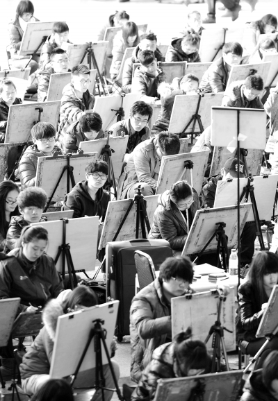 二月的北京乍暖還寒,卻絲毫擋不住藝考的熱度。畫(huà)夾、樂(lè)器、背包、拖箱……年味兒還沒(méi)散去,各大藝術(shù)院校里紛紛涌入的考生和家長(zhǎng)便共同打響了一場(chǎng)“藝考攻堅(jiān)戰(zhàn)”。