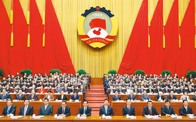 3月12日,中國人民政治協商會議第十二屆全國委員會第一次會議在北京閉幕。這是胡錦濤、習近平、吳邦國、溫家寶、賈慶林、李克強、張德江、劉云山、王岐山、張高麗等在主席臺就座。 新華社記者 鞠 鵬攝