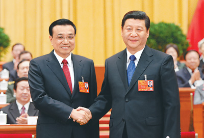 根據中華人民共和國第十二屆全國人民代表大會第一次會議的決定,任命李克強為中華人民共和國國務院總理。
