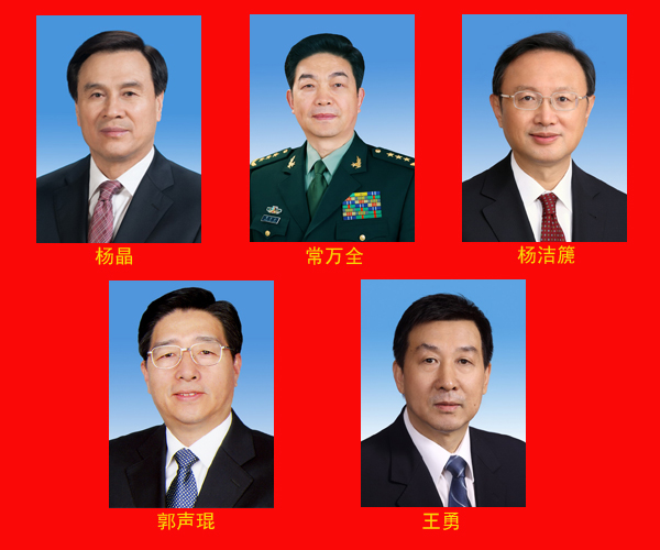 楊晶、常萬全、楊潔篪、郭聲琨、王勇任國務委員