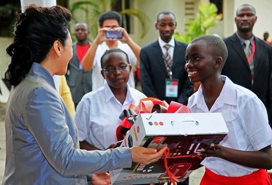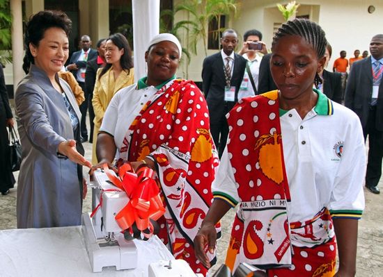 彭麗媛向坦桑尼亞基金會(huì)贈(zèng)送縫紉機(jī)和書包[組圖]
