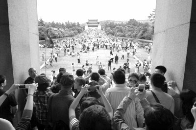 4月29日,游客在南京中山陵參觀游覽。當日是“五一”小長假第一天,南京中山陵迎來客流高峰。為方便游客,“五一”前夕,景區新增500個休閑坐椅,改造升級5個旅游觀光車候車站臺;通往景區內的旅游專線車和景區內公廁延長開放時間;志愿者在中山陵廣場為游客提供服務。2010年11月,中山陵免費開放。(新華社發)