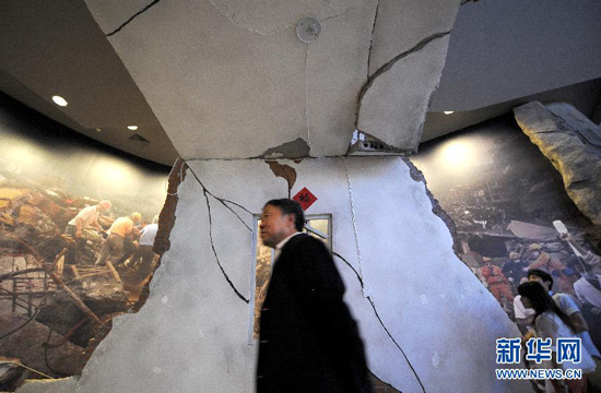 5月9日,一名參觀者在“5·12”汶川特大地震紀念館內參觀。當日,為紀念“5·12”汶川特大地震五周年,位于四川省北川羌族自治縣曲山鎮任家坪的“5·12”汶川特大地震紀念館正式面向社會公眾免費開放。據悉,展廳通過837張圖片、5000余件實物,配以雕塑、模型及多媒體演示,再現了四川“5·12”汶川特大地震災區從廢墟走向新生的歷程。新華社發(薛玉斌 攝)